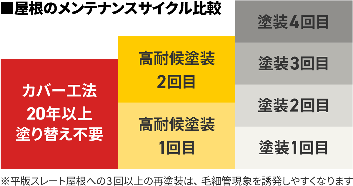 ガイソーでは少しでも屋根の重さを軽減するために 5つのカバー工法商品をおすすめしています!